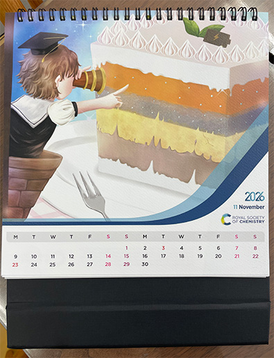 英国化学会は世界的に高い認知度を有しており、本カレンダーを通じて、当該論文紹介とあわせて広く発信されることになりました。